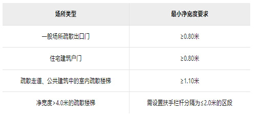 疏散門凈寬度應滿足疏散要求,且門扇開啟后不應影響疏散寬度